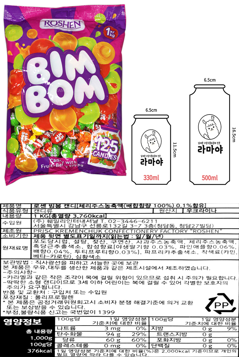 로센 로젠 빔봄 캔디 1kg 대용량 과일 필링 사탕 : 라마야