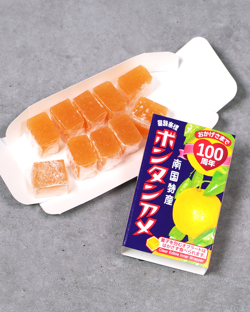 본탄 아메는 일본 남부 지역의 감귤류 과일인 '본탄'을 사용해 만든 전통 과일 캔디예요.