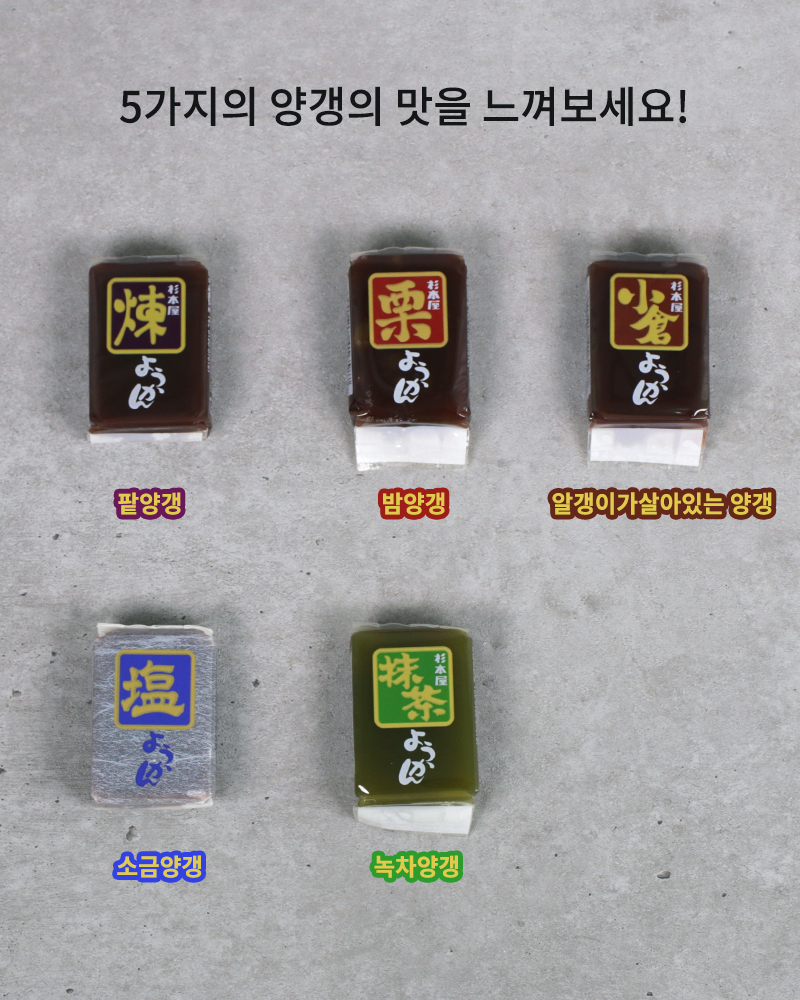 팥양갱, 밤양갱, 알갱이가 살아있는 양갱, 소금양갱, 말차양갱까지!