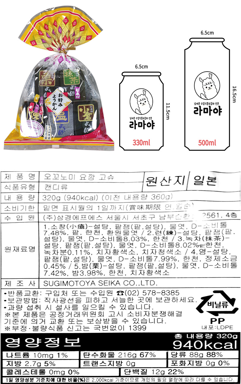스기모토야 5가지맛 오코노미 요깡 320g 일본 팥 밤 양갱