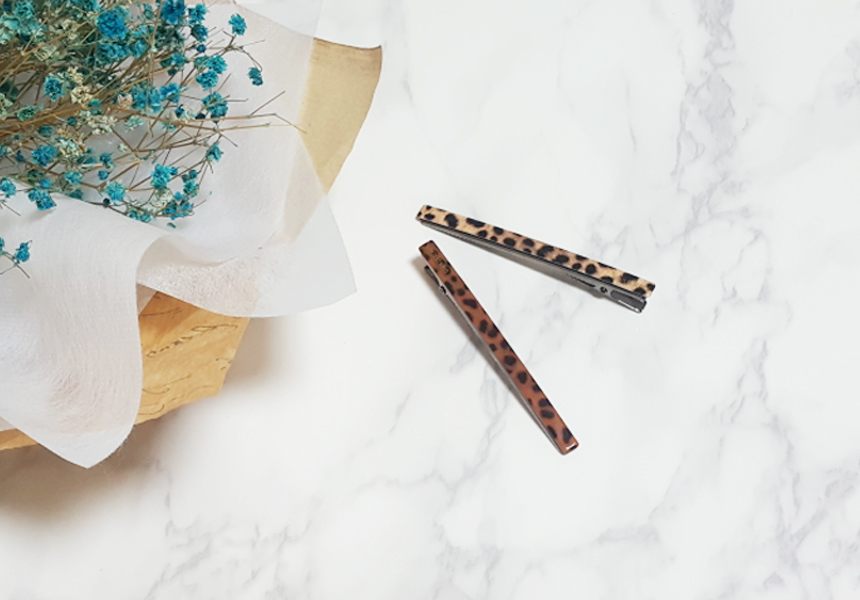 심플 일자 빼빼로핀 호피머리핀 헤어집게핀