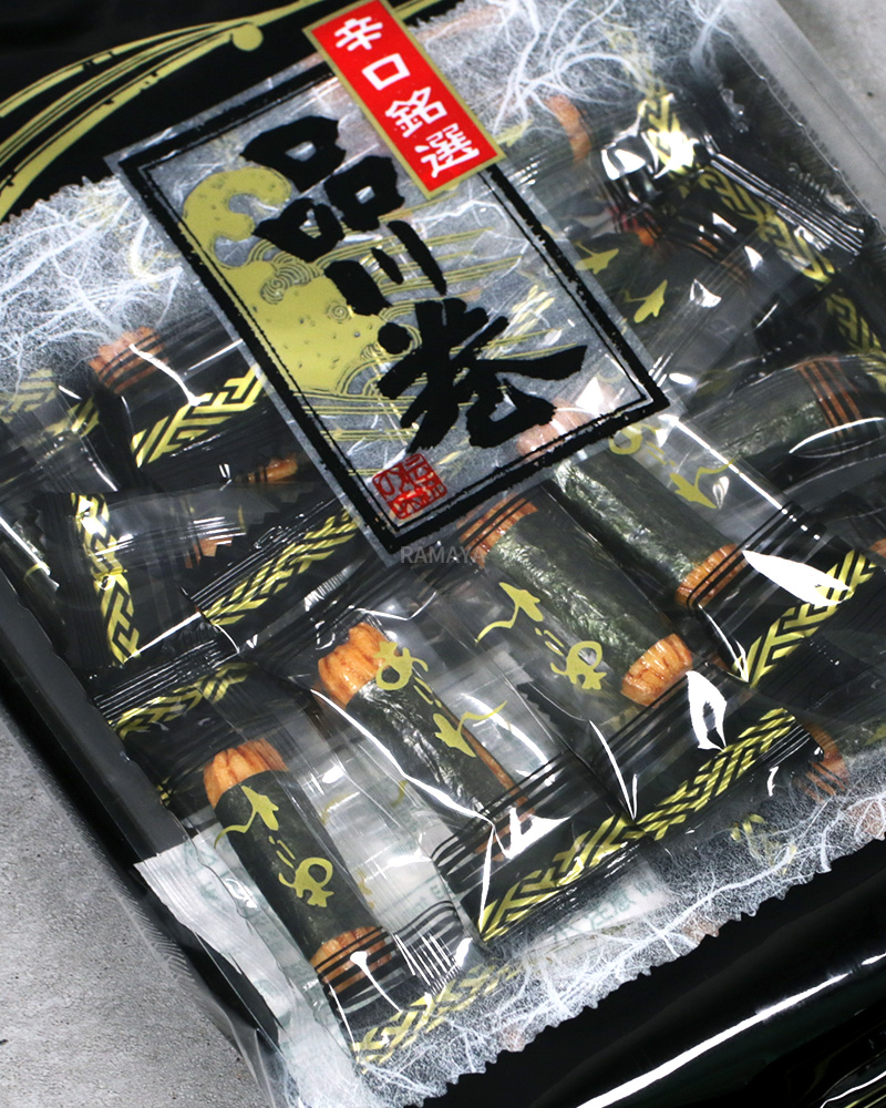 키라라 시나가와 노리마키는 정성스럽게 구운 센베이에 진한 간장 소스를 입히고, 그 위에 고소한 김을 한 번 더 감싸 완성한 프리미엄 일본 스낵입니다.
